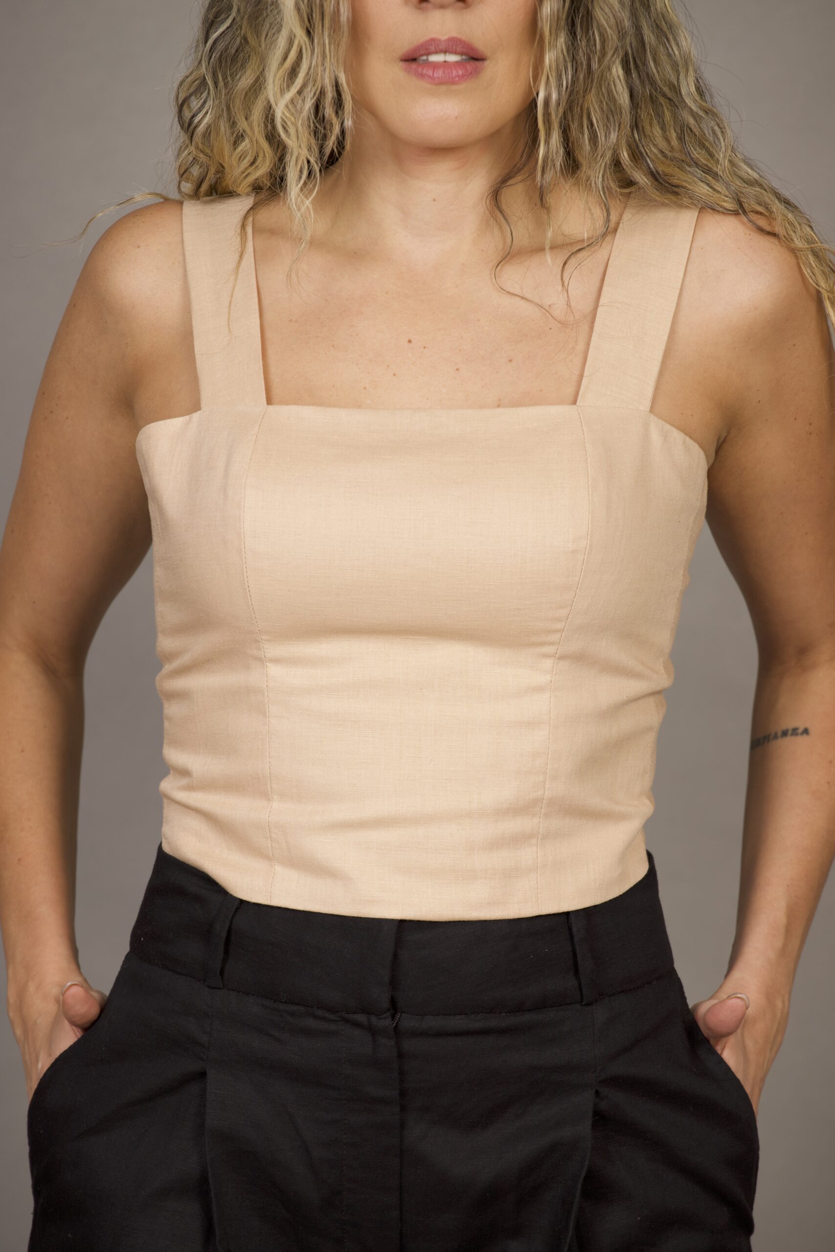 Crop top versátil con tiras ajustables en forma de hojas, que se adaptan a cada silueta y pueden cruzarse en la espalda para un toque personalizado y chic.